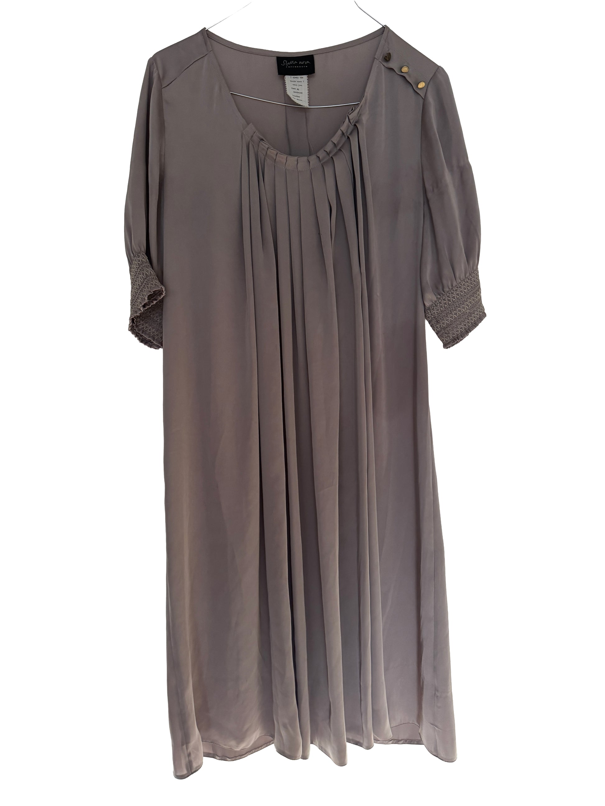 Really pretty beige/taupe colored dress from a new found brand Stella Nova. Nice details at the front and the arms! Some minor almost invisible injuries therefor the price!
